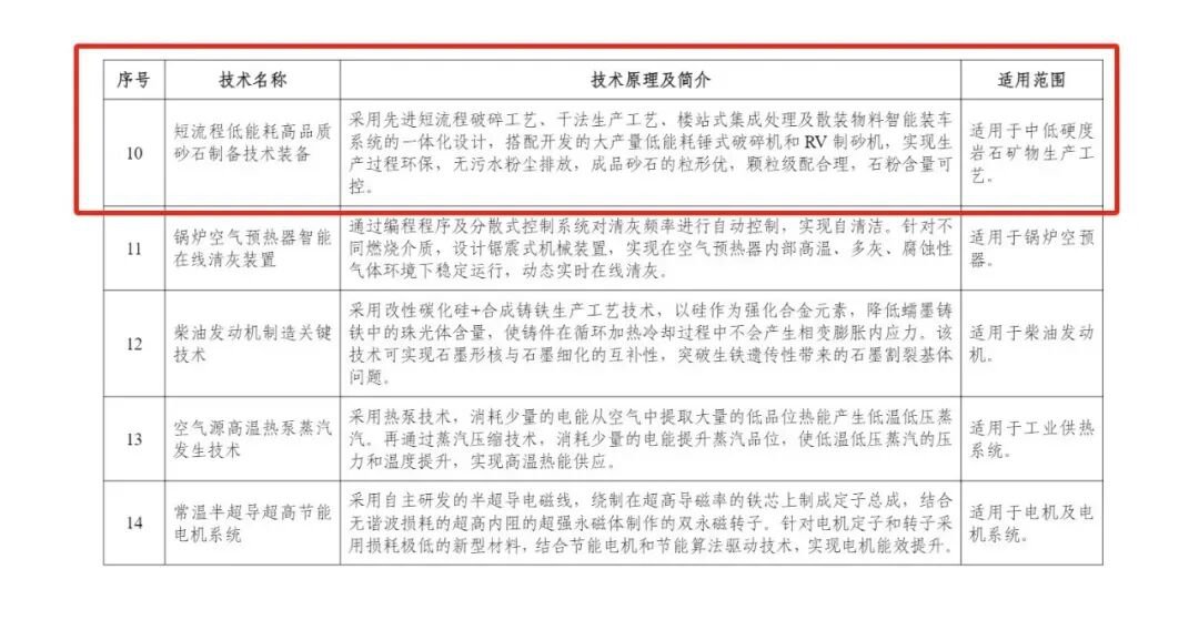 2023年,入選工信部《國家鼓勵發(fā)展的重大環(huán)保技術(shù)裝備目錄》,成為砂石裝備領(lǐng)域少數(shù)獲此殊榮的技術(shù)之一。